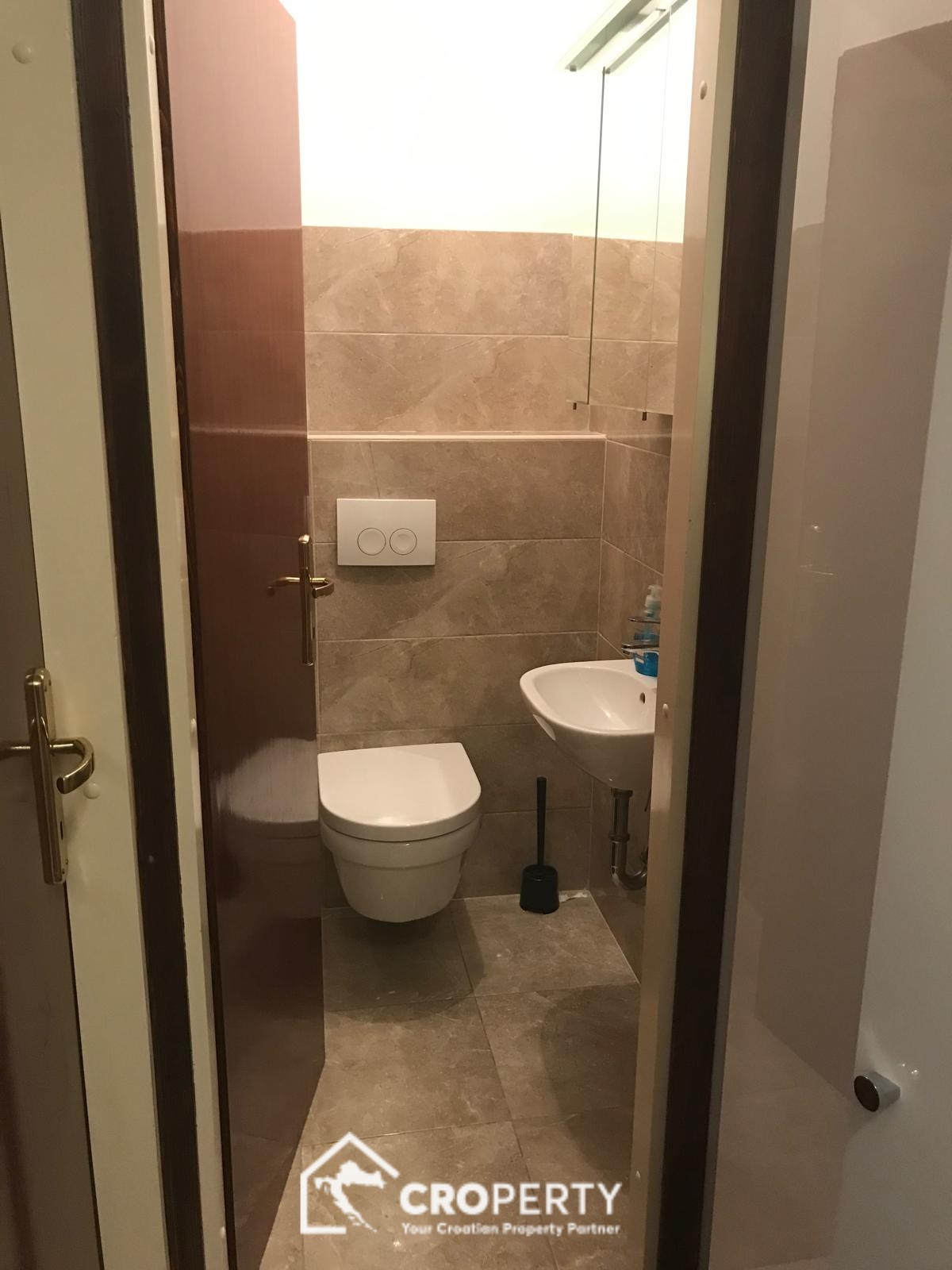 Stan je u potpunosti renoviran, uključujući zamjenu vanjske stolarije prije devet godina. Opremljen je kvalitetnim sanitarijama renomiranih proizvođača Villeroy & Boch i Grohe.