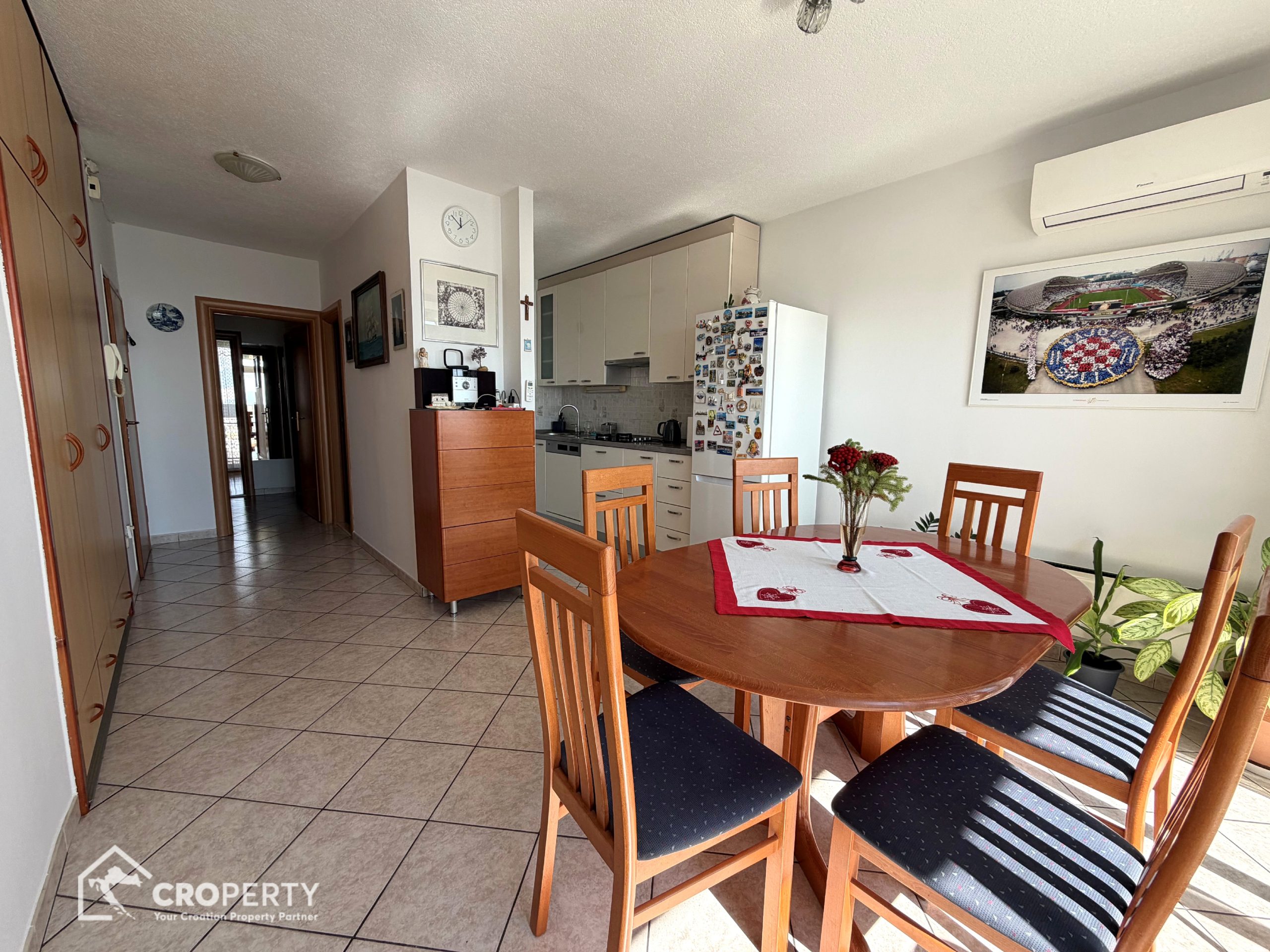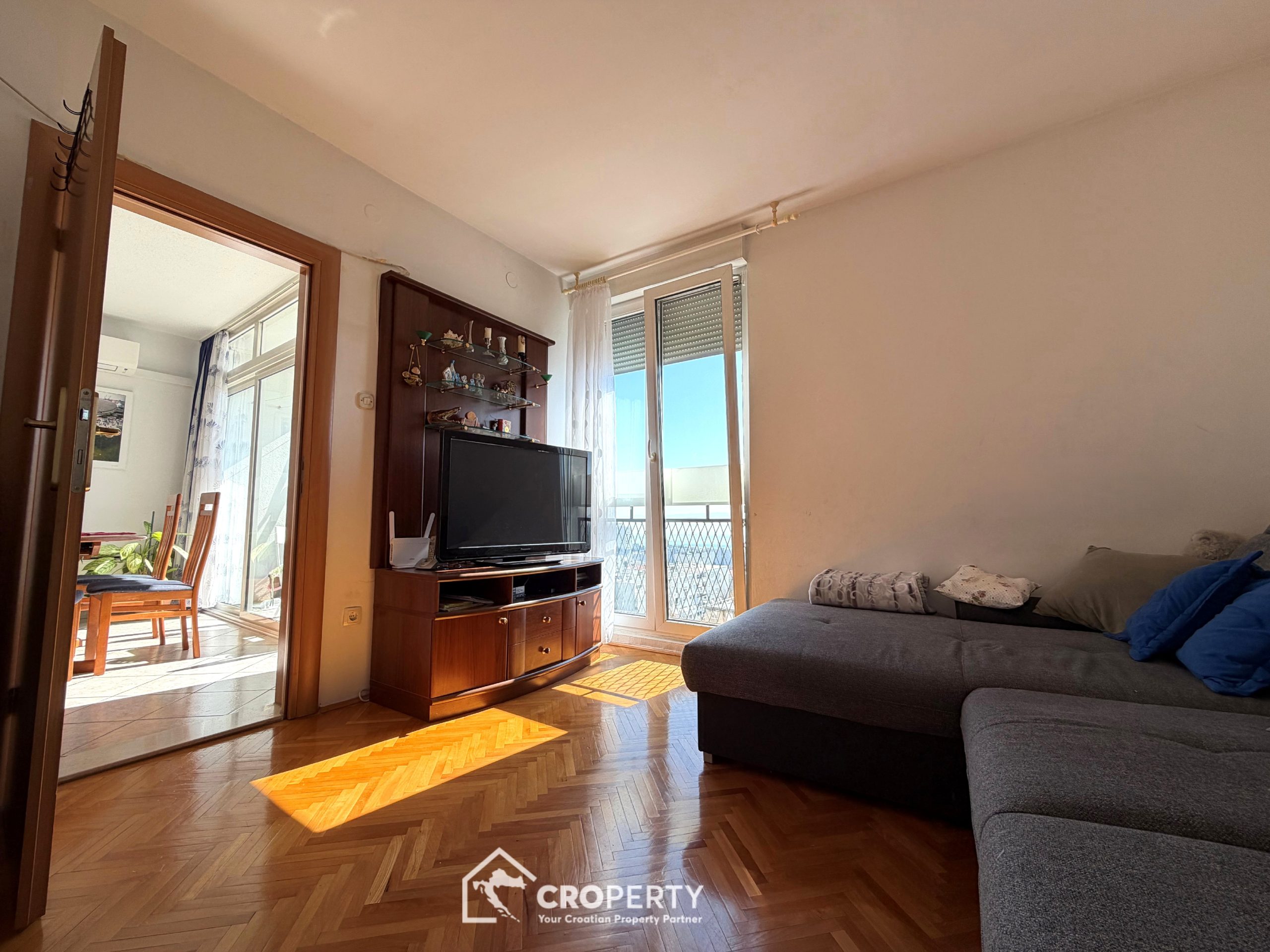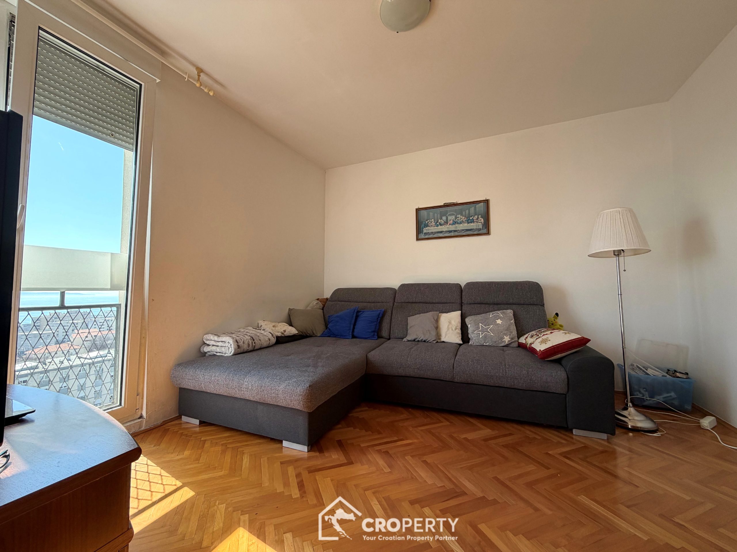Posredujemo u zamjeni komfornog dvosobnog stana površine 72 m² smještenog na višem katu zgrade u splitskom kvartu Lokve, jednoj od najpraktičnijih i prometno vrlo dobro povezanih gradskih lokacija.