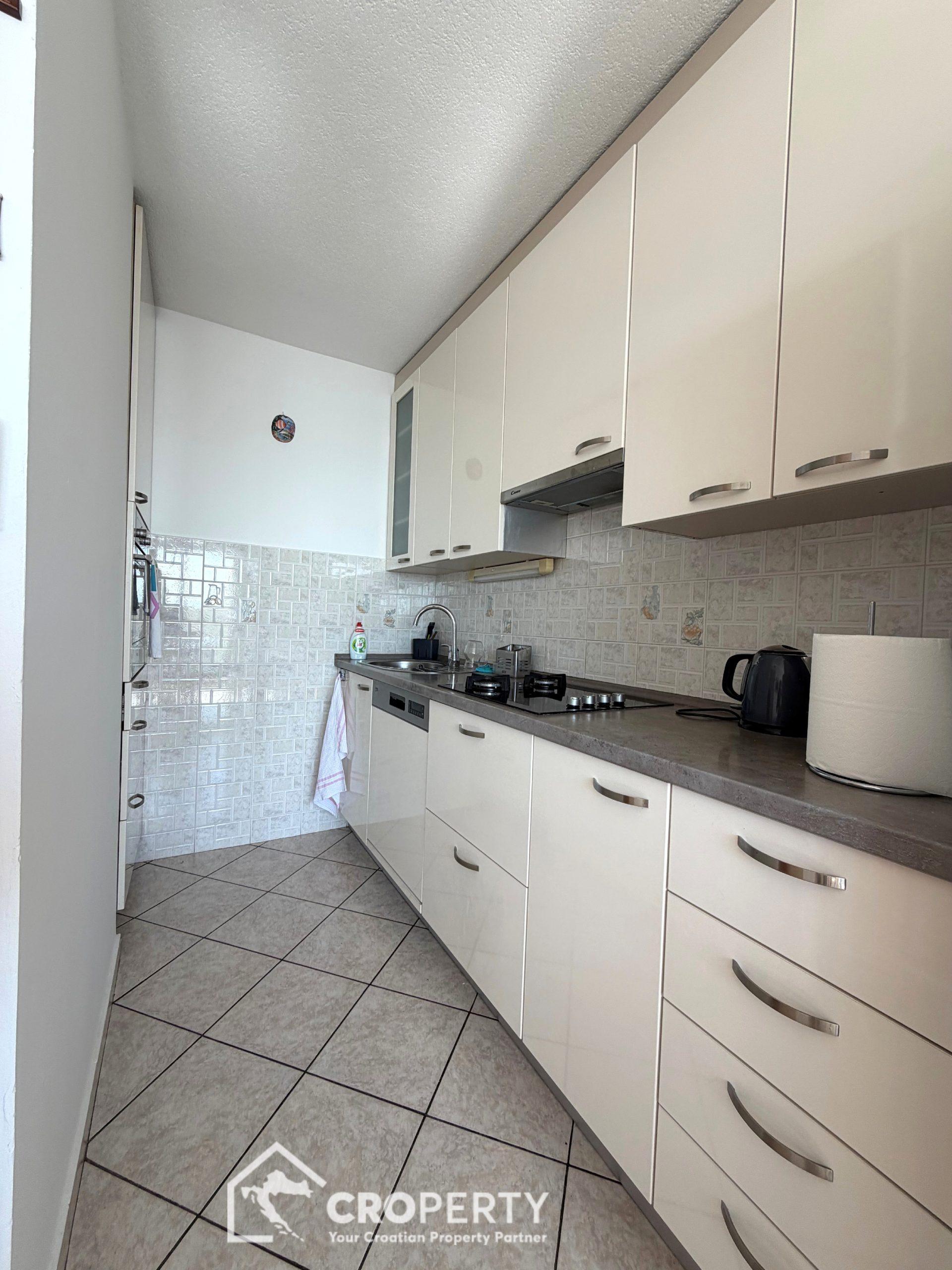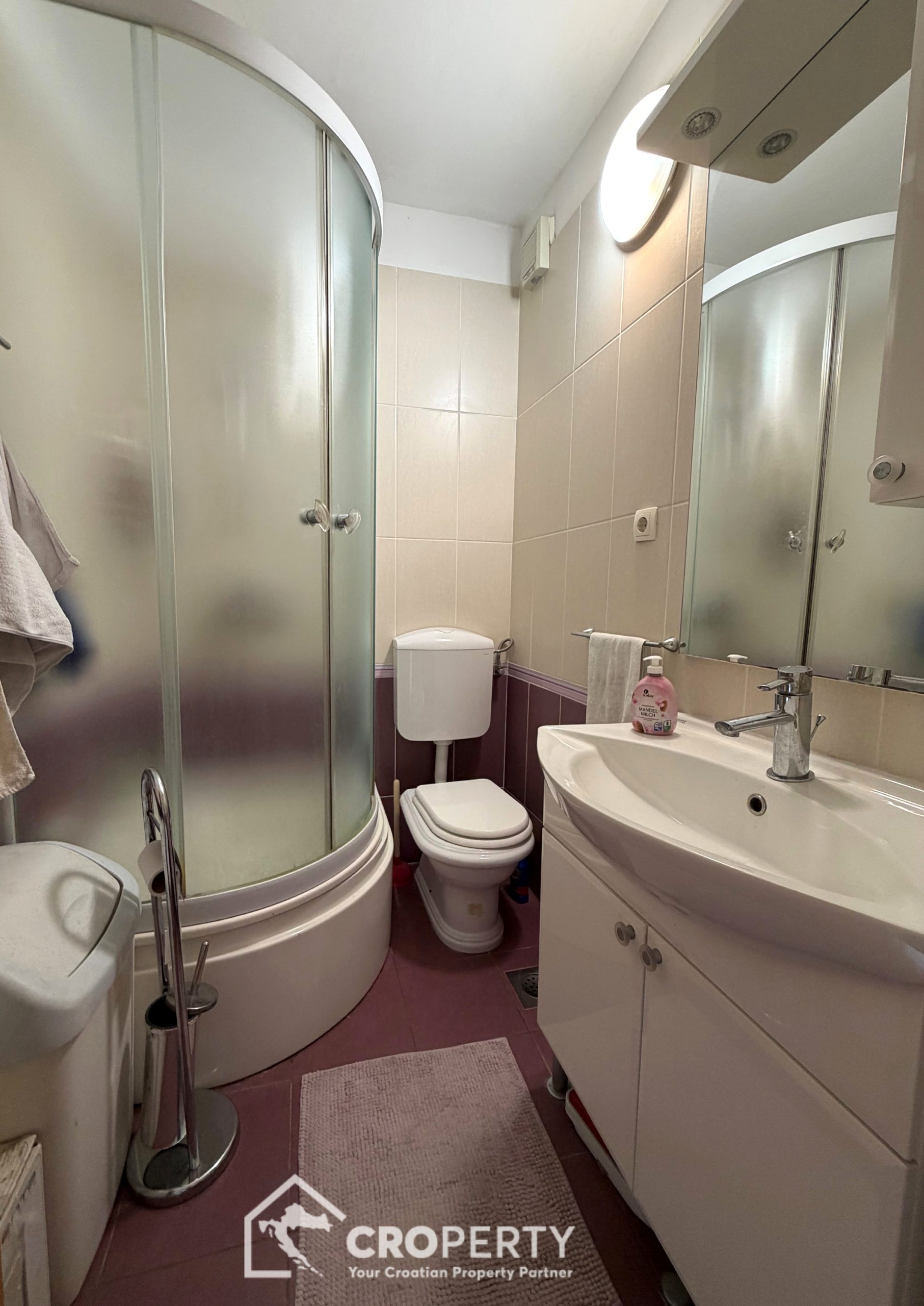 Velika prednost ovog stana je njegova lokacija. U prizemlju zgrade nalaze se trgovine i pekare, dok su unutar približno 100 metara dostupni dječji park, crkva sv. Petra, osnovna škola Gripe i supermarket.