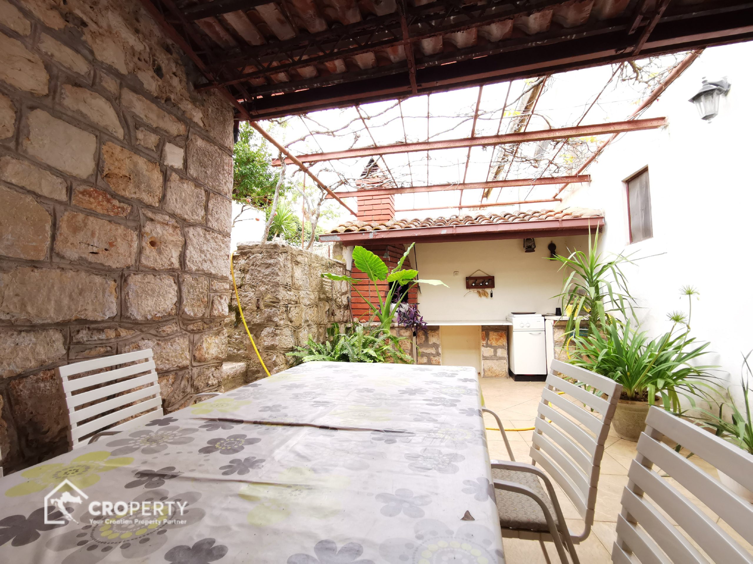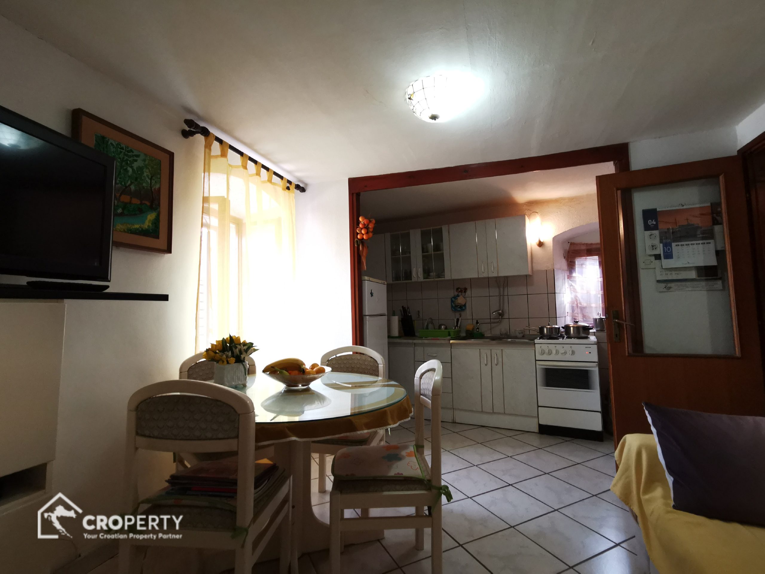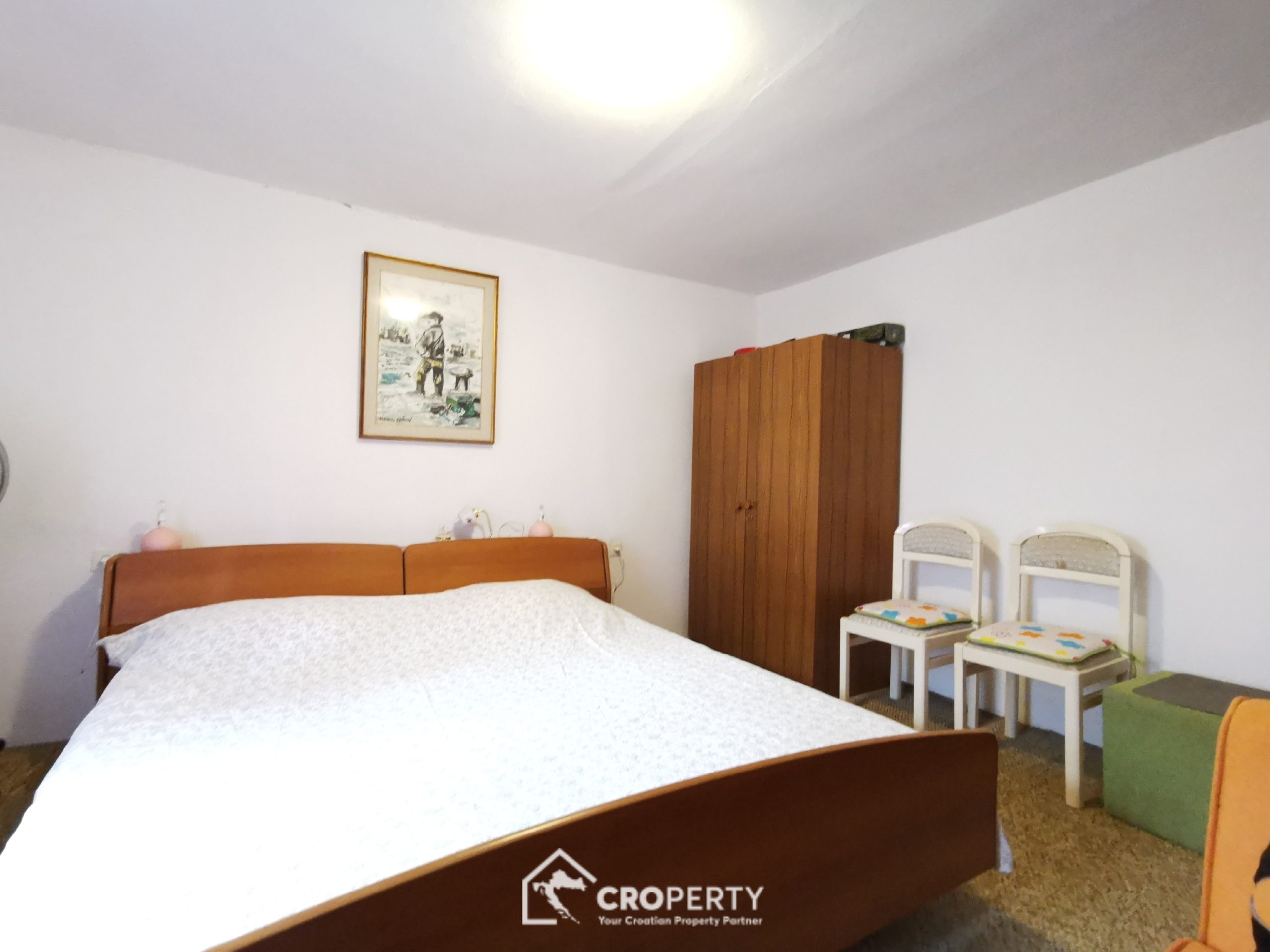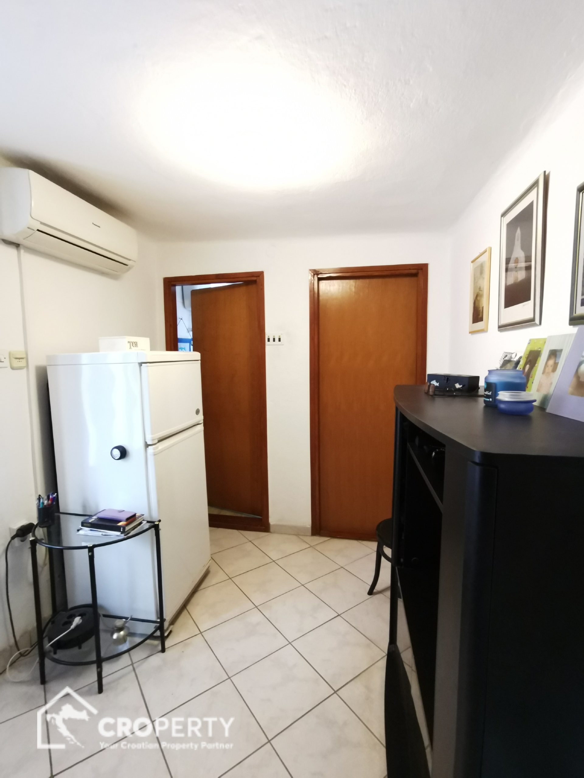Preuređena konoba u studio apartman 45 m² s kuhinjom, blagovaonicom i kupaonicom. Ima vlastiti ulaz i dvorište površine 41 m² – idealno za najam ili goste.