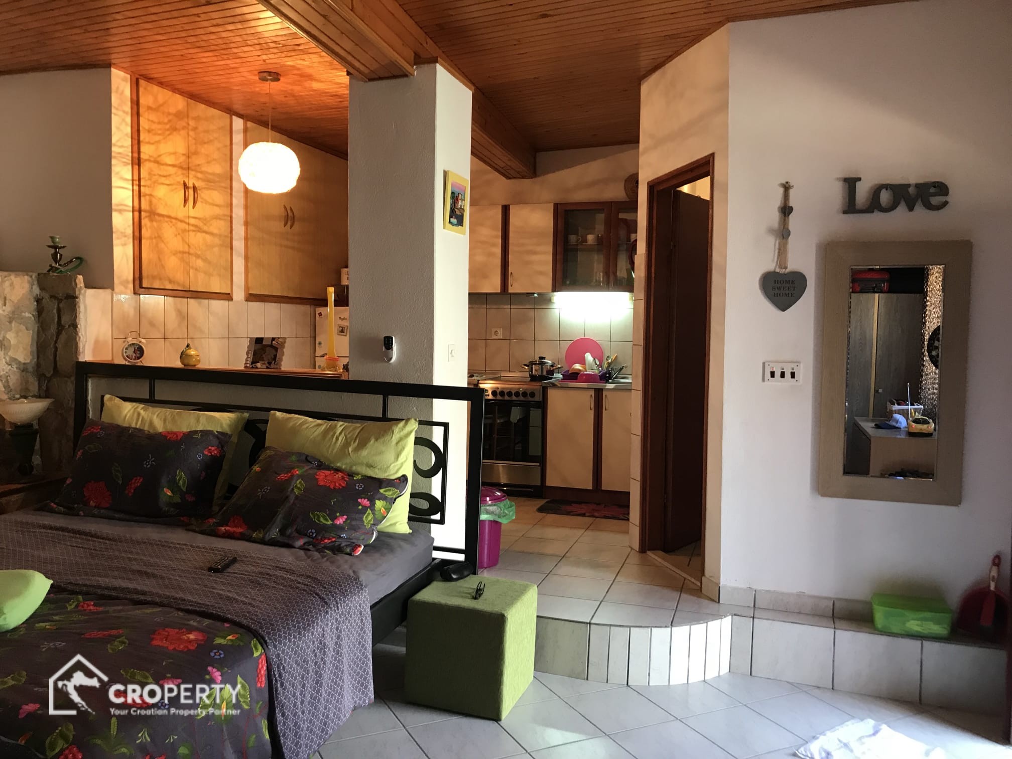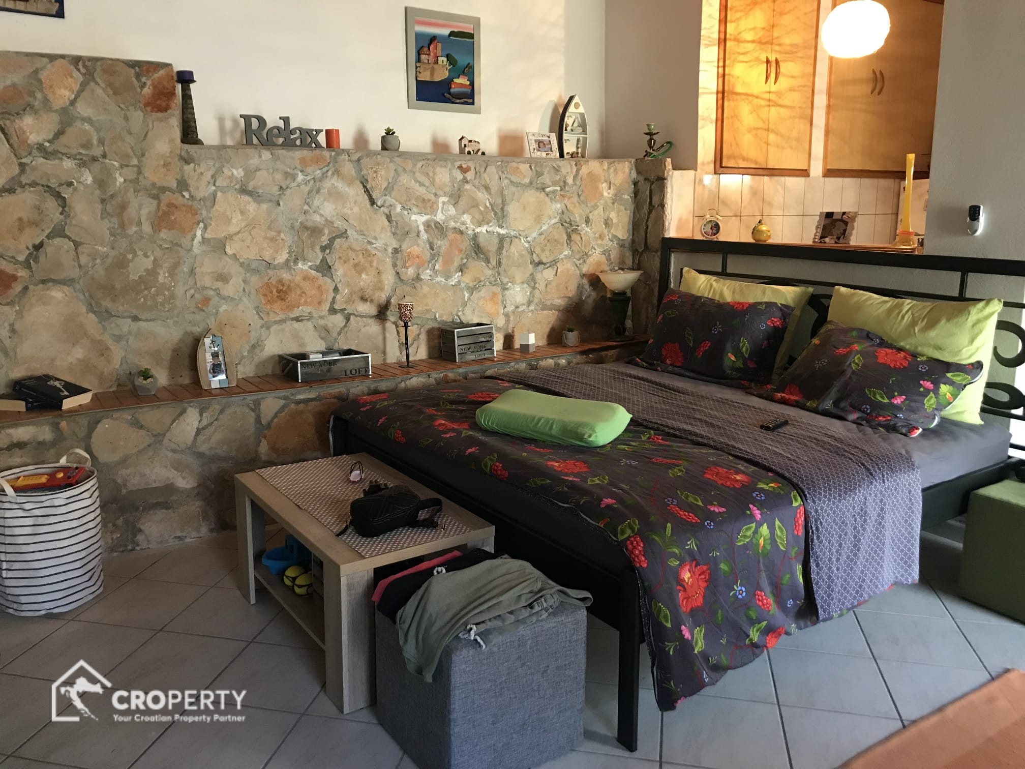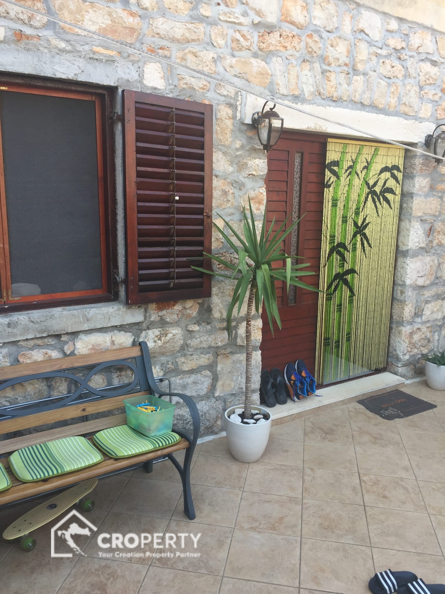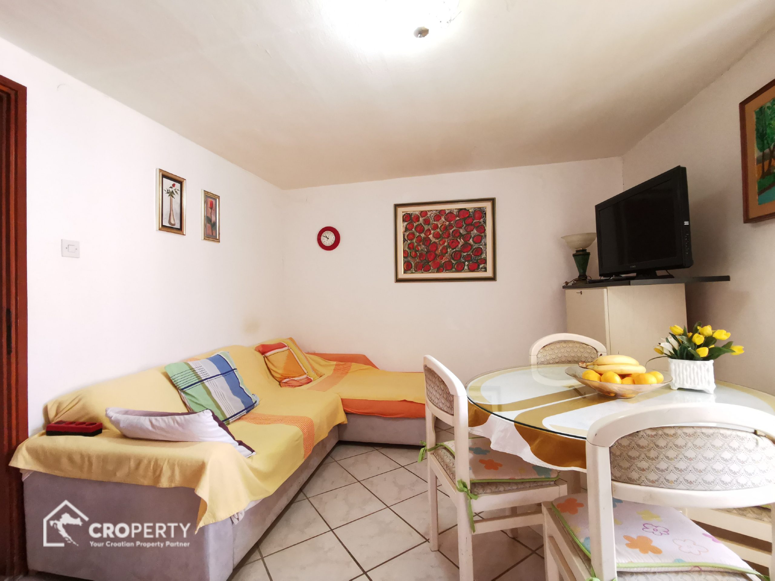 Preuređena konoba u studio apartman 45 m² s kuhinjom, blagovaonicom i kupaonicom. Ima vlastiti ulaz i dvorište površine 41 m² – idealno za najam ili goste.