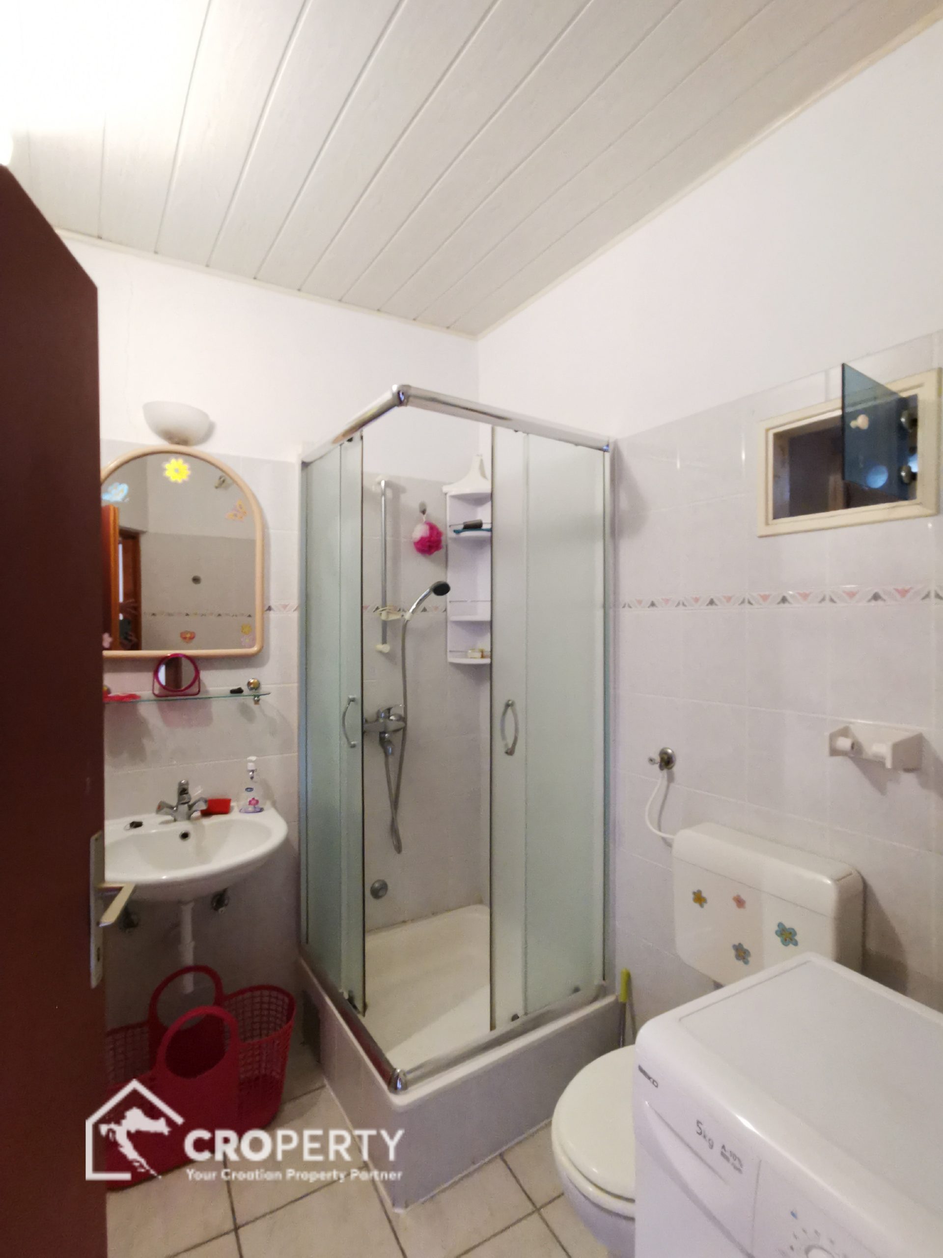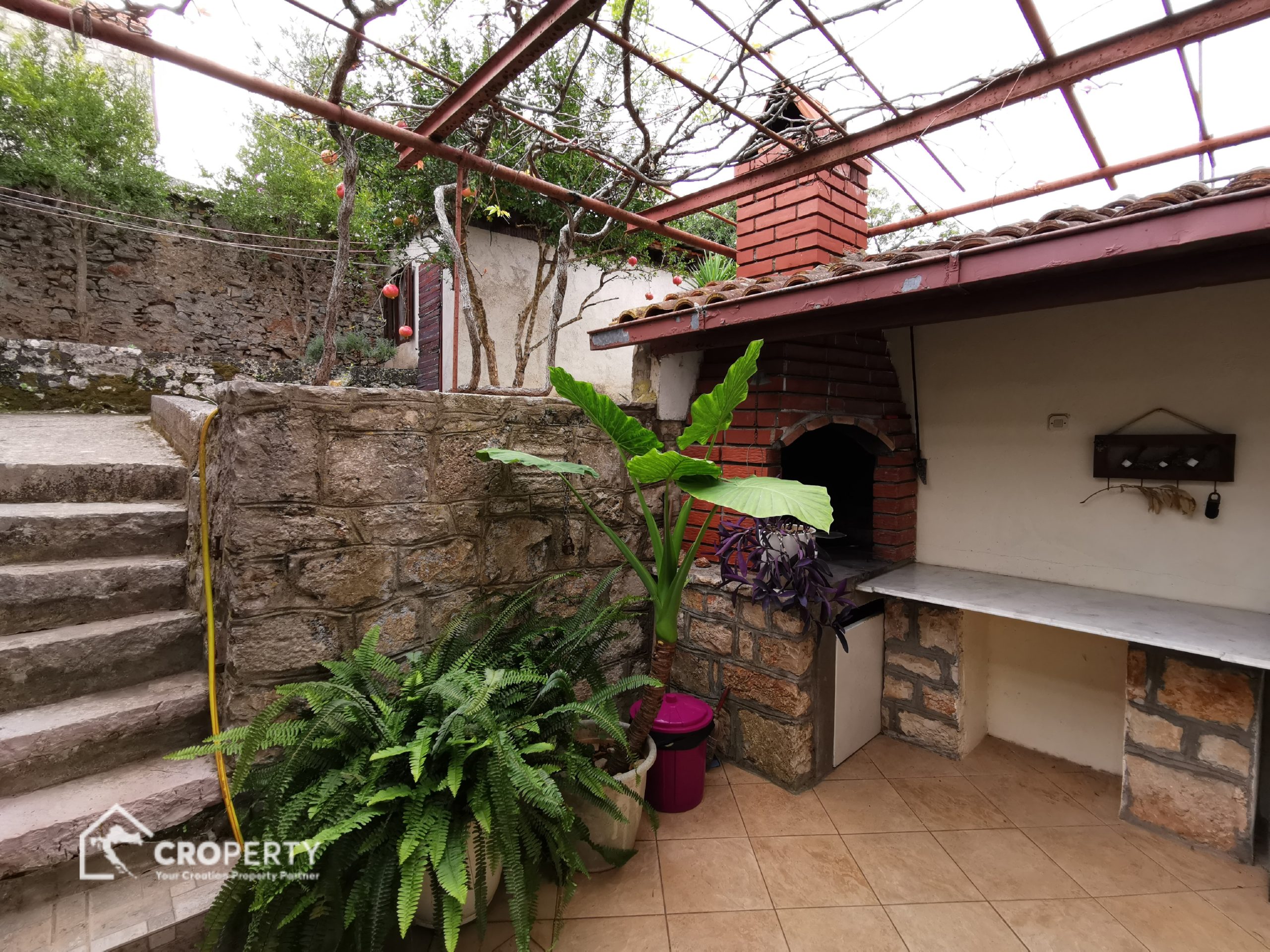 Dvoetažni apartman 90 m² s odvojenim ulazom i prostranim dvorištem od 77 m², koje uključuje kamin i ljetnu kuhinju. Sastoji se od: