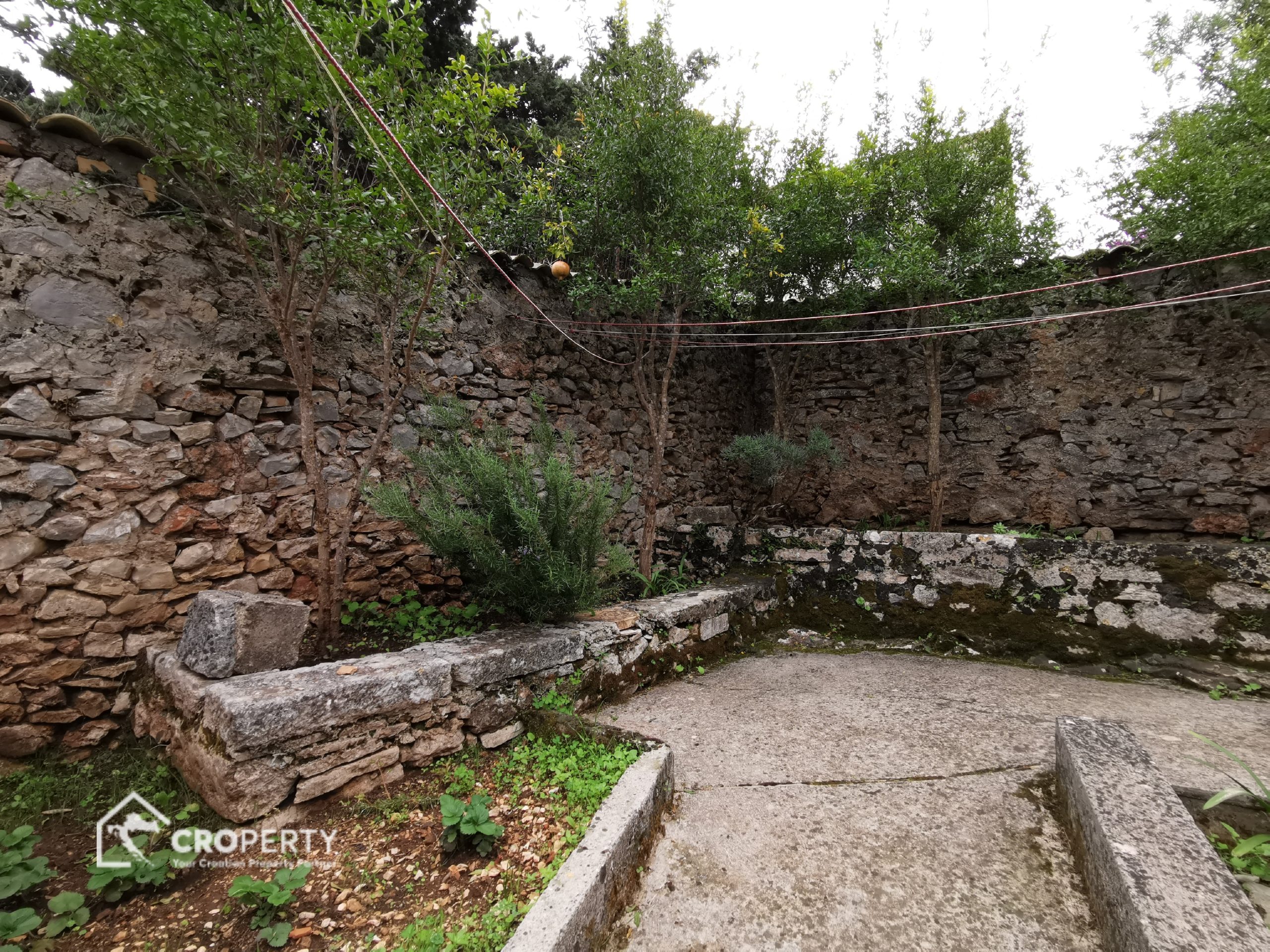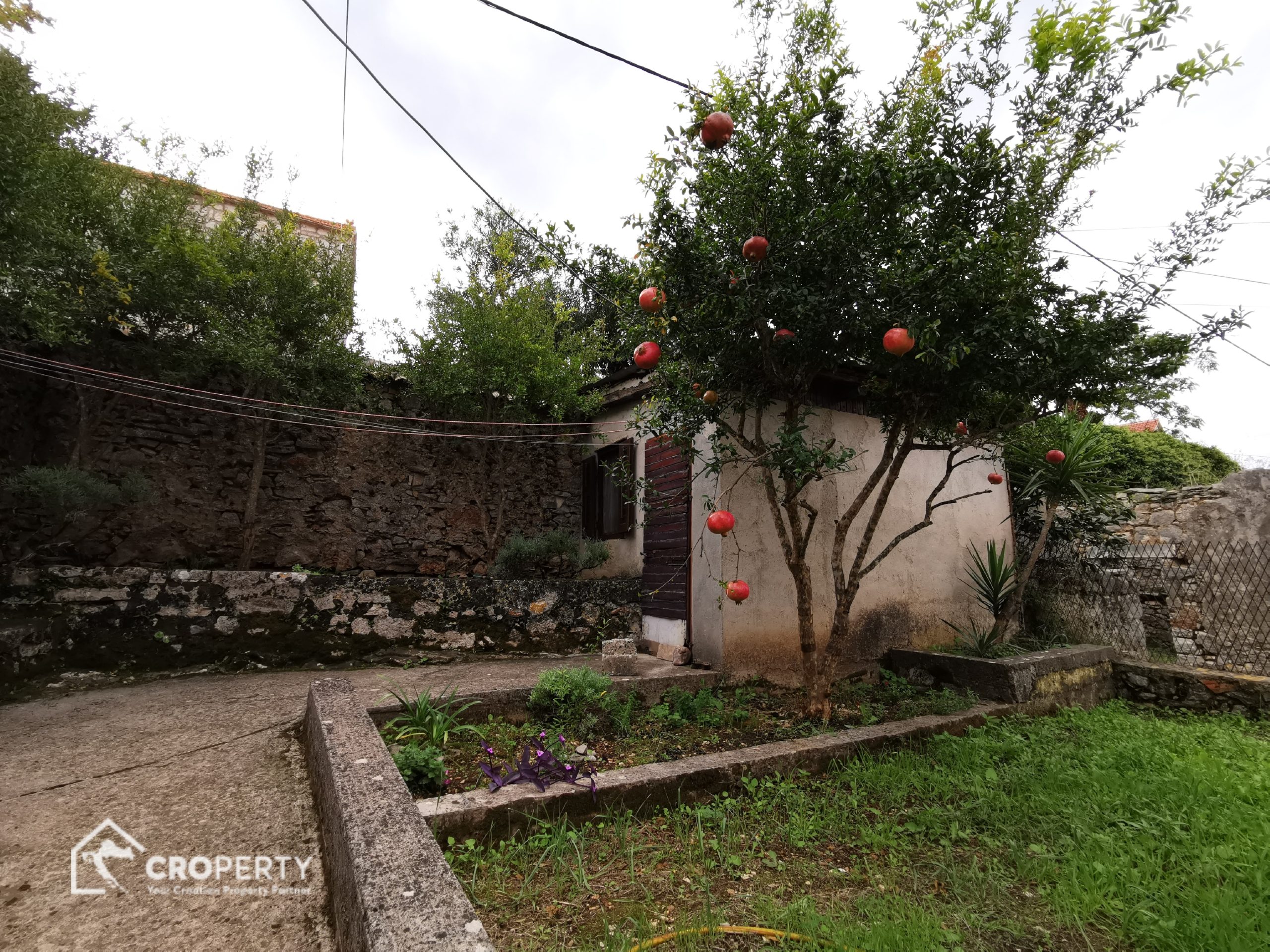 Kuća je okružena zelenilom, privatnim dvorištima i pruža potpuni mir, tišinu i mediteranski ugođaj.