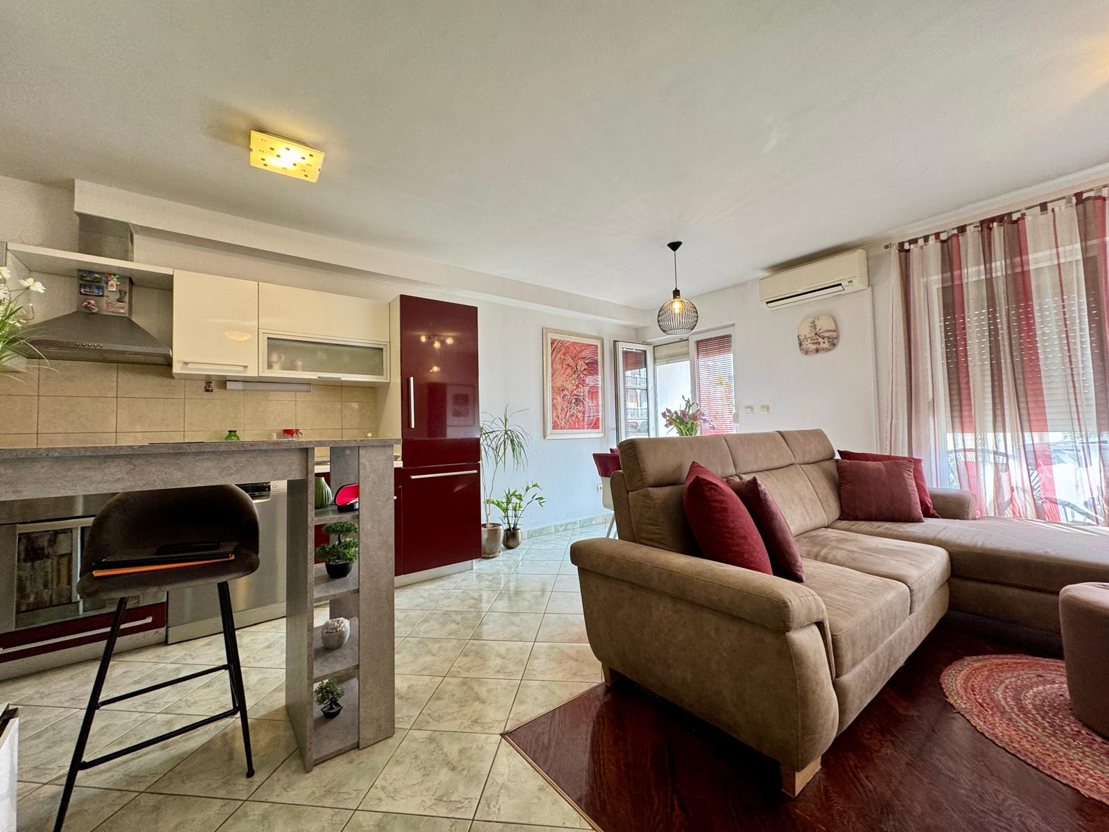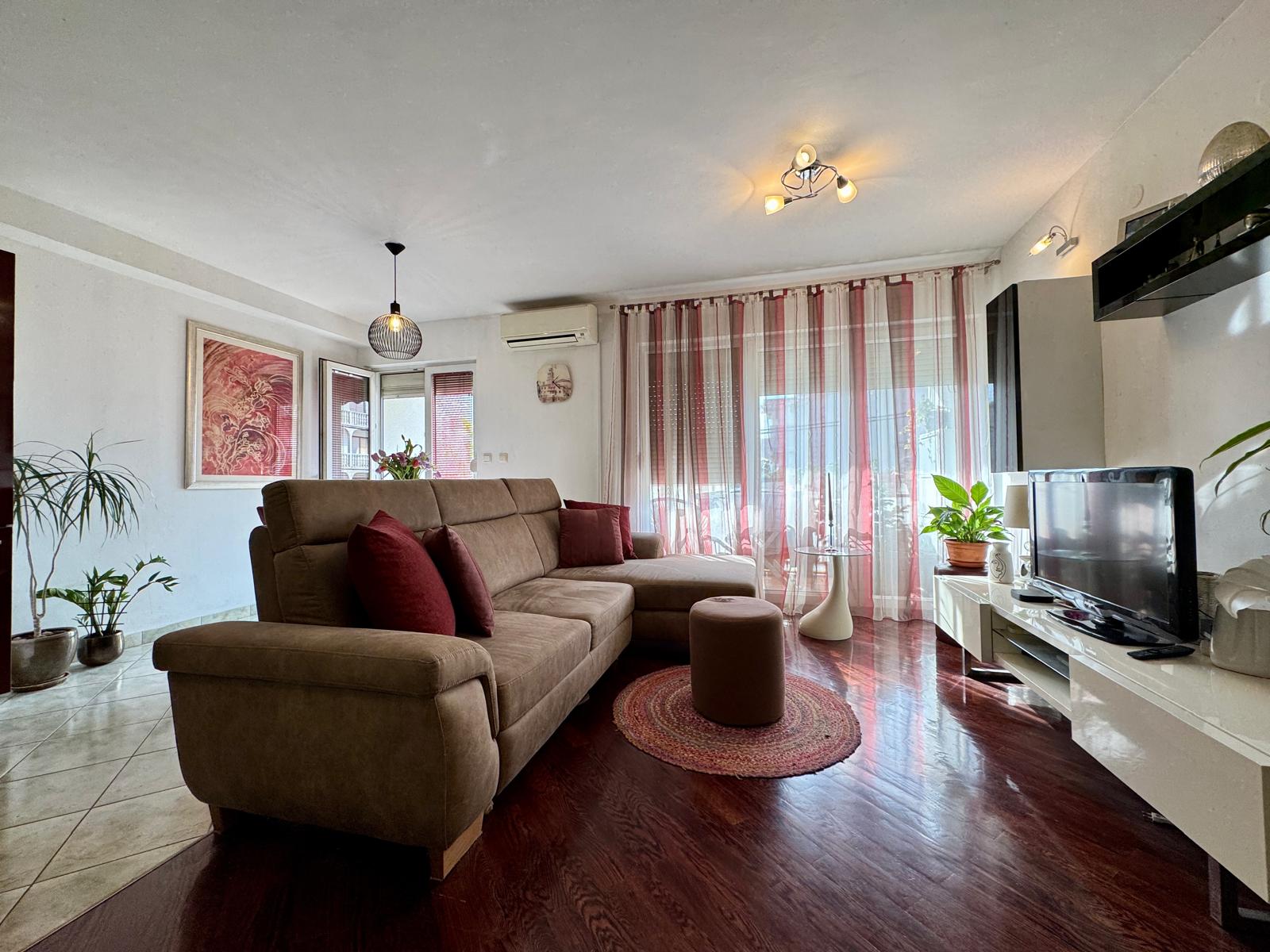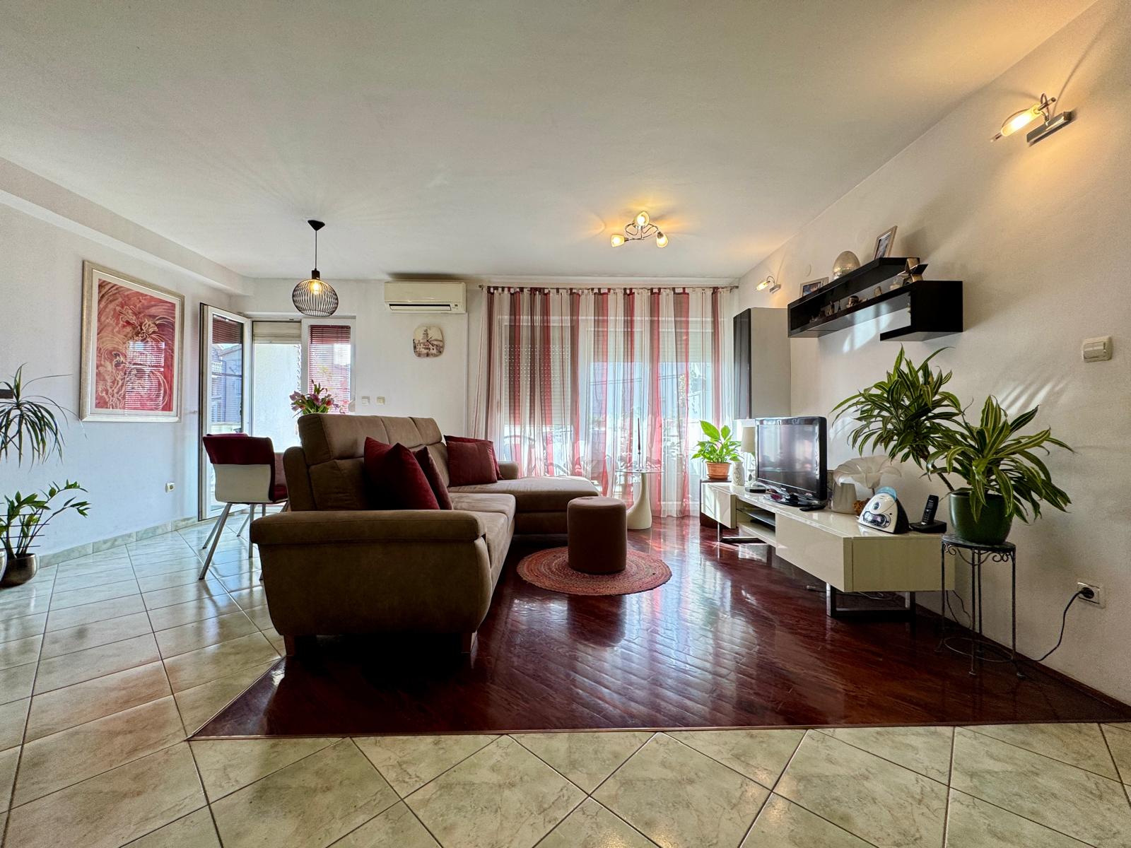 Prostor je pažljivo uređen – stan je kupljen u roh-bau fazi te su ga vlasnici kompletno i kvalitetno dovršili 2011. godine. U dnevnom boravku i sobama postavljen je parket, a stan je klimatiziran s dvije klime.