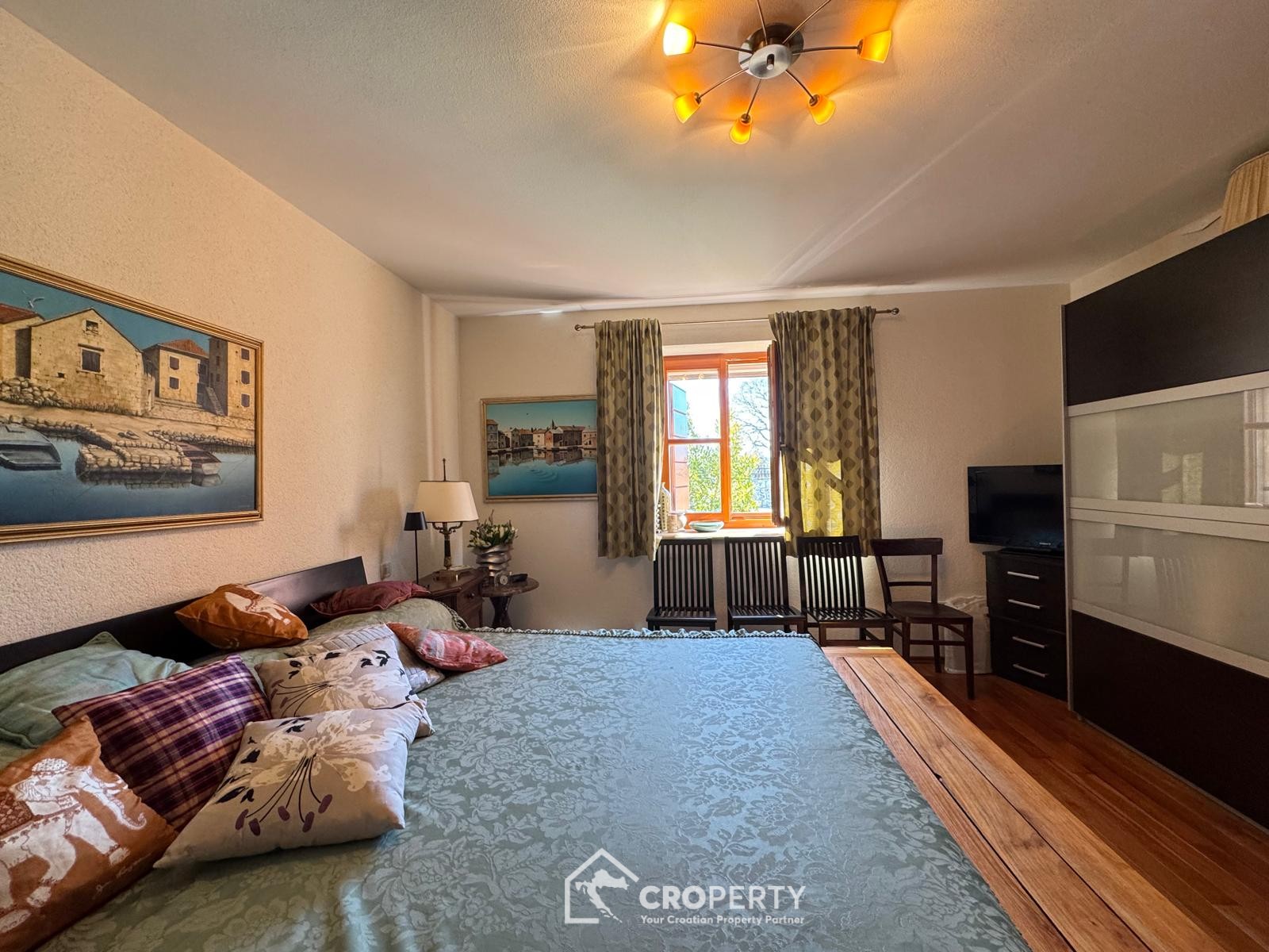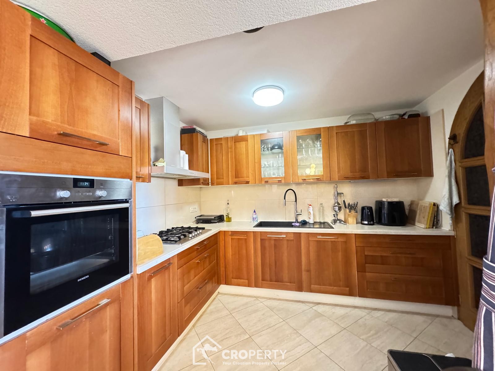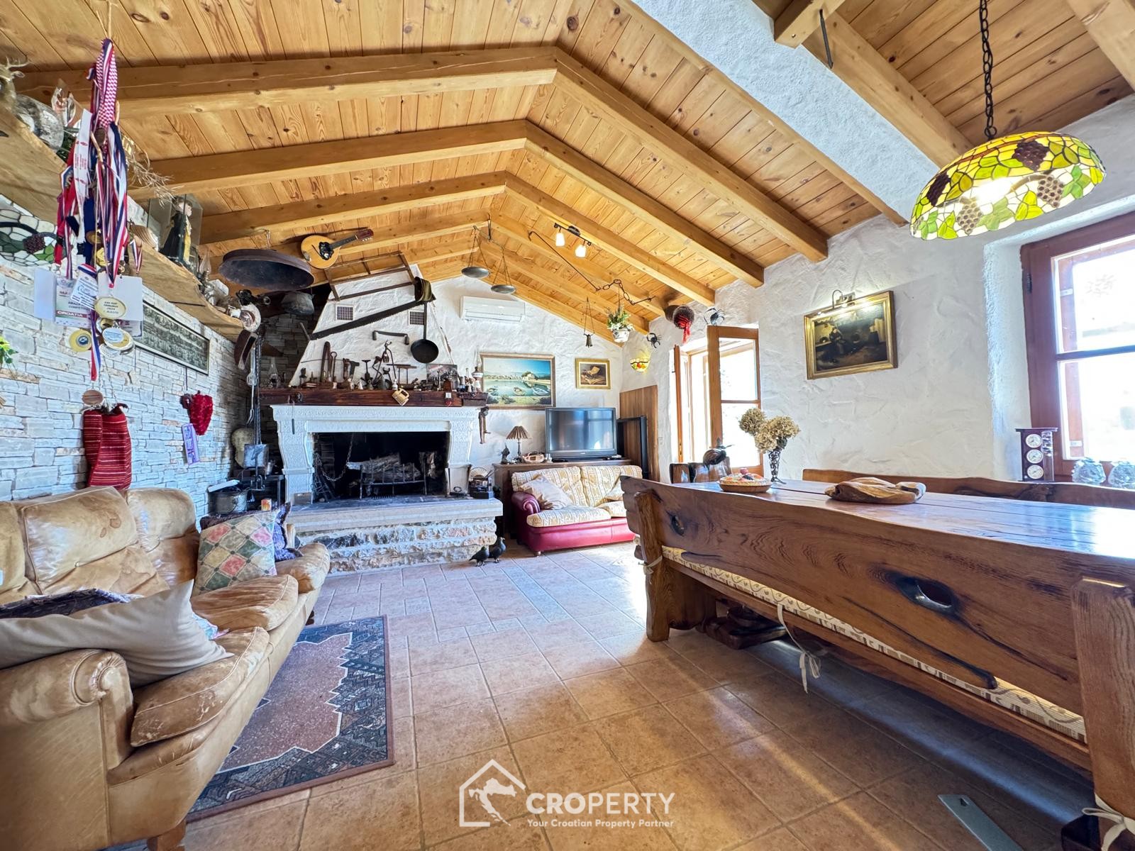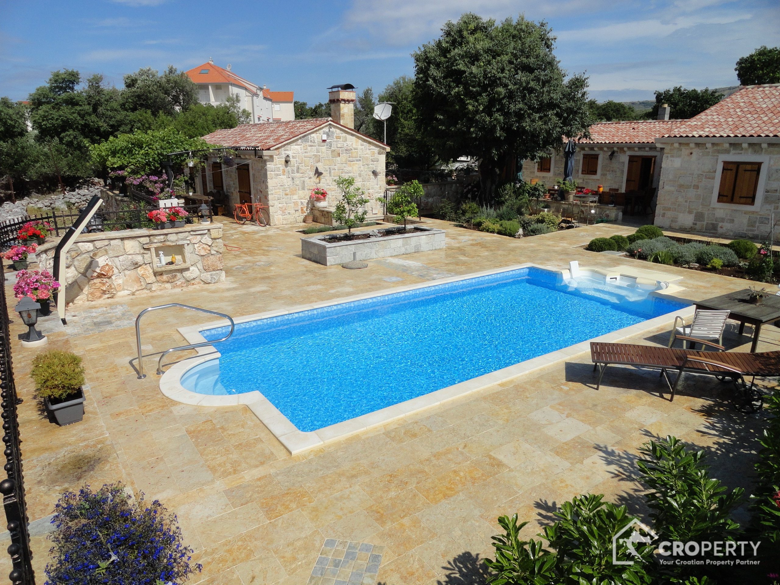 Nudimo vam jedinstvenu priliku za kupnju luksuzne vile izgrađene 2012. godine u autentičnom dalmatinskom stilu, izrađene od pravog ručno klesanog kamena. Vilu karakteriziraju vrhunski izolirani zidovi debljine 60 cm, zahvaljujući termo-fasadi koja osigurava minimalne troškove grijanja i hlađenja. U elegantno uređenom dvorištu, popločanom prirodnim kamenom i ukrašenom primorskim biljem, nalazi se grijani bazen za opuštanje tijekom cijelog dana, čak i za vrućih ljetnih mjeseci.