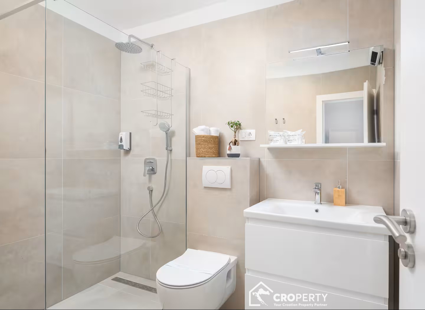 Posebnu prednost predstavlja direktan ulaz iz garaže u stan, što pruža maksimalnu udobnost i praktičnost, osobito u zimskim ili kišnim danima.