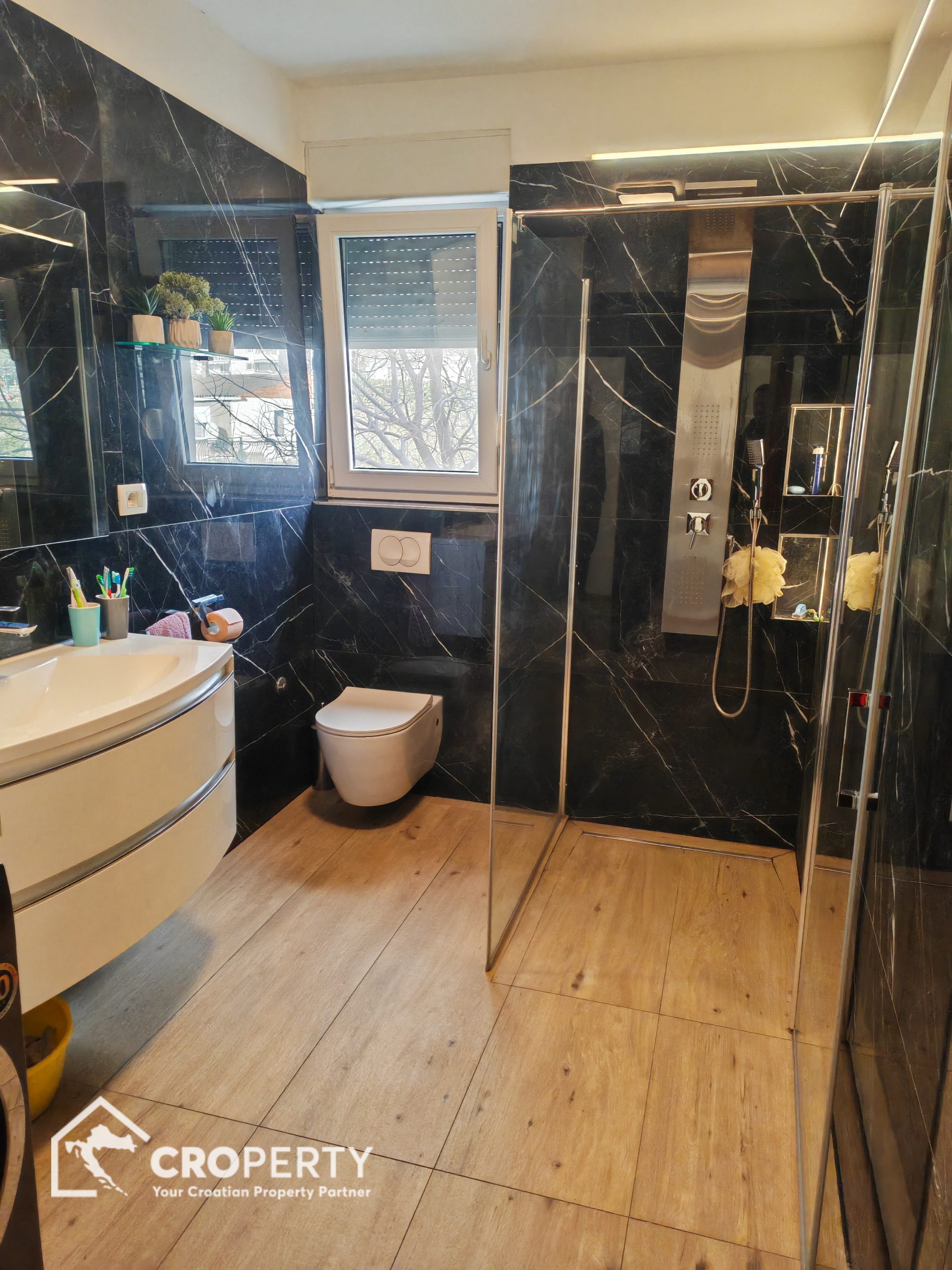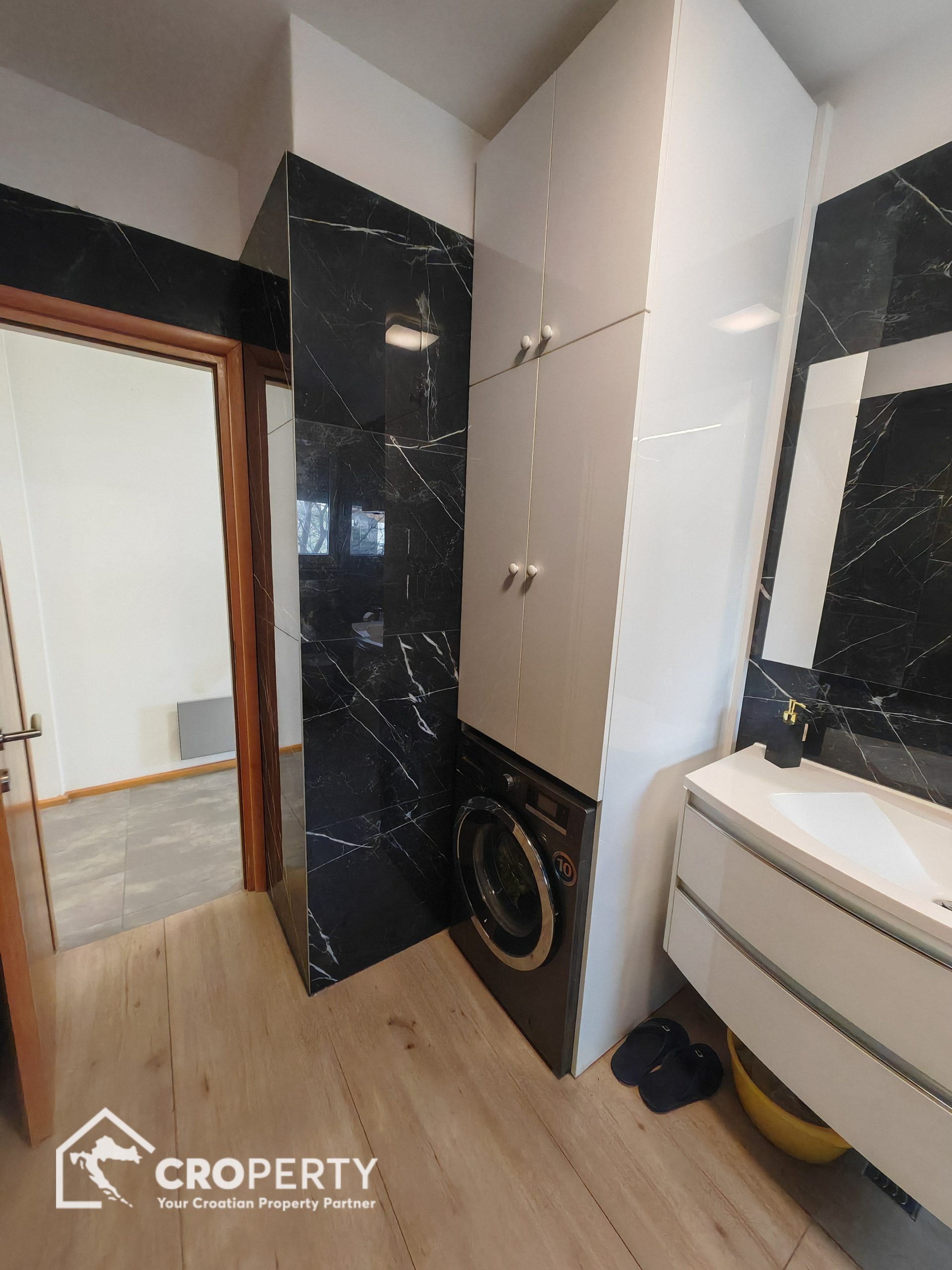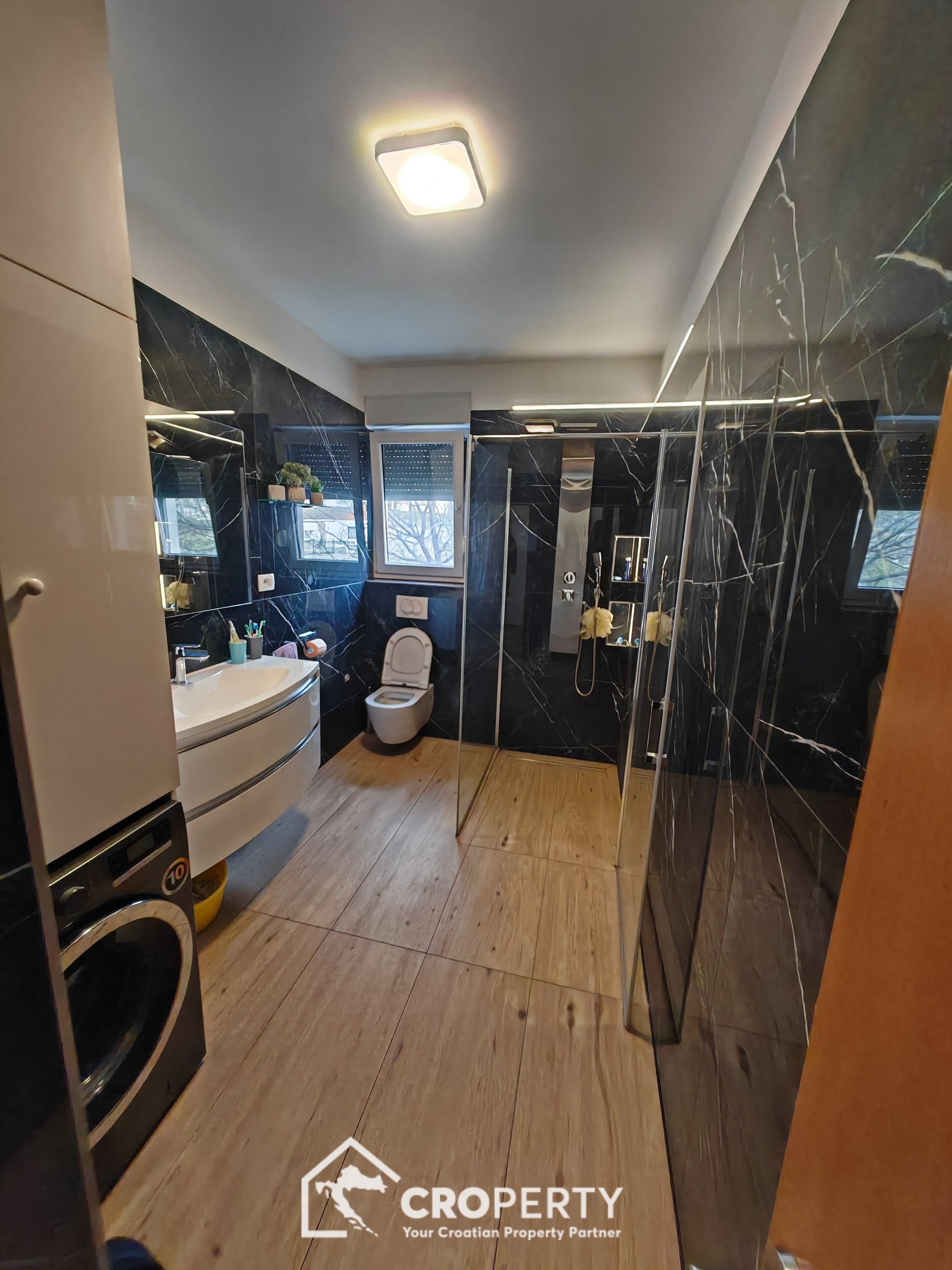 Ovaj stan odlikuje odličan raspored, obilje prirodnog svjetla te visoka kvaliteta uređenja. Prodaje se kompletno namješten, a namještaj je uključen u cijenu.