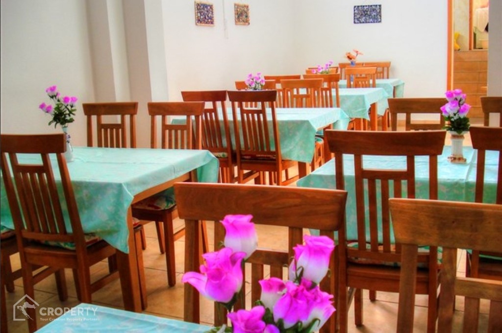 Ono što posebno ističe ovu kuću je njezin potencijal: zahvaljujući restoranu i brojnim sobama na višim katovima, ona se pretvara u investiciju visokog ranga, savršenu za boutique hotel, pansion ili luksuznu villu s ugostiteljskim sadržajem.