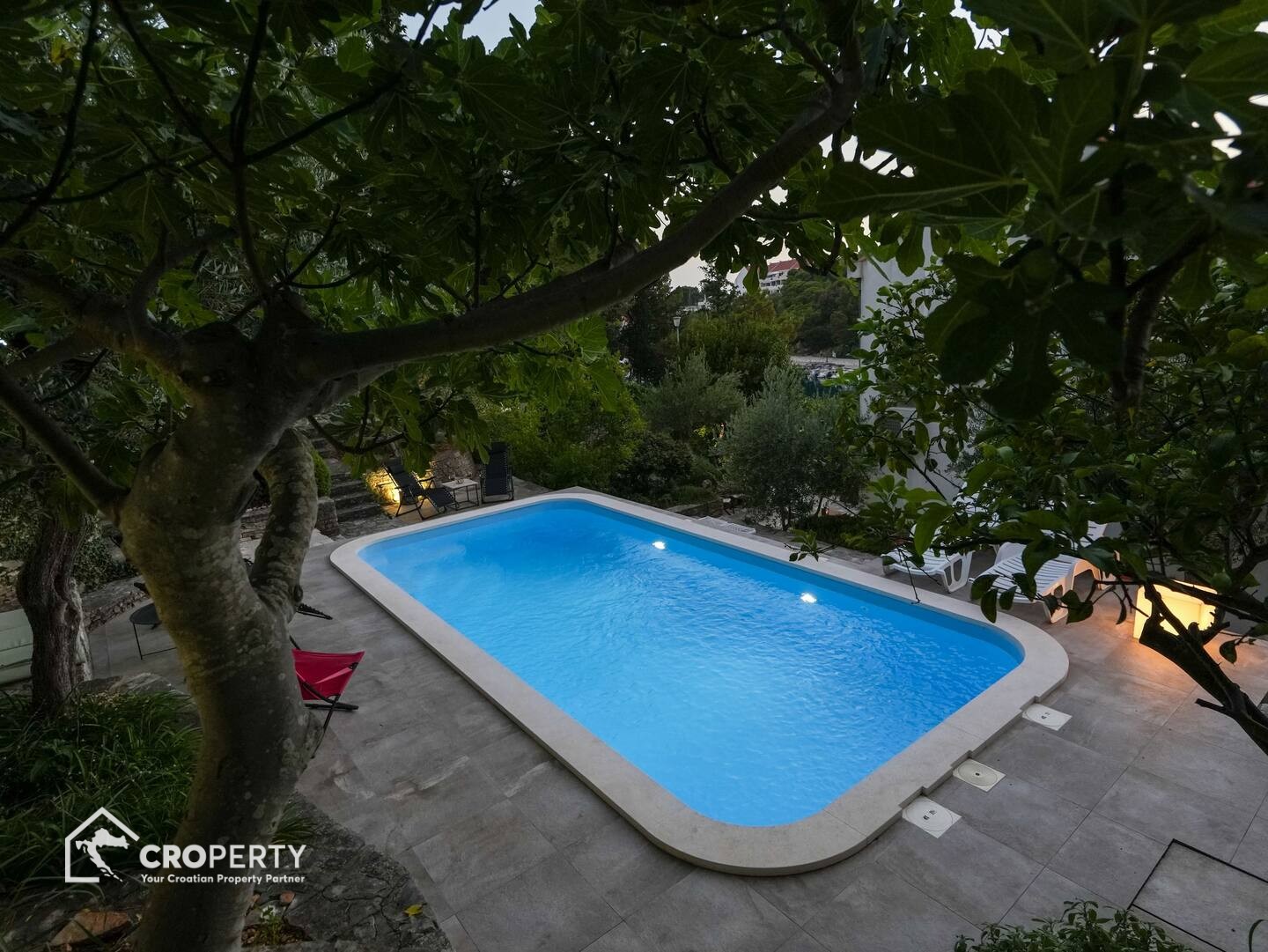 Sastavni dio vanjskog prostora je i otvoreni bazen s uređenim pripadajućim terasama i adekvatnom strojarnicom. Vodena površina bazena je 7,50×3,50 m, dubine 145 cm.