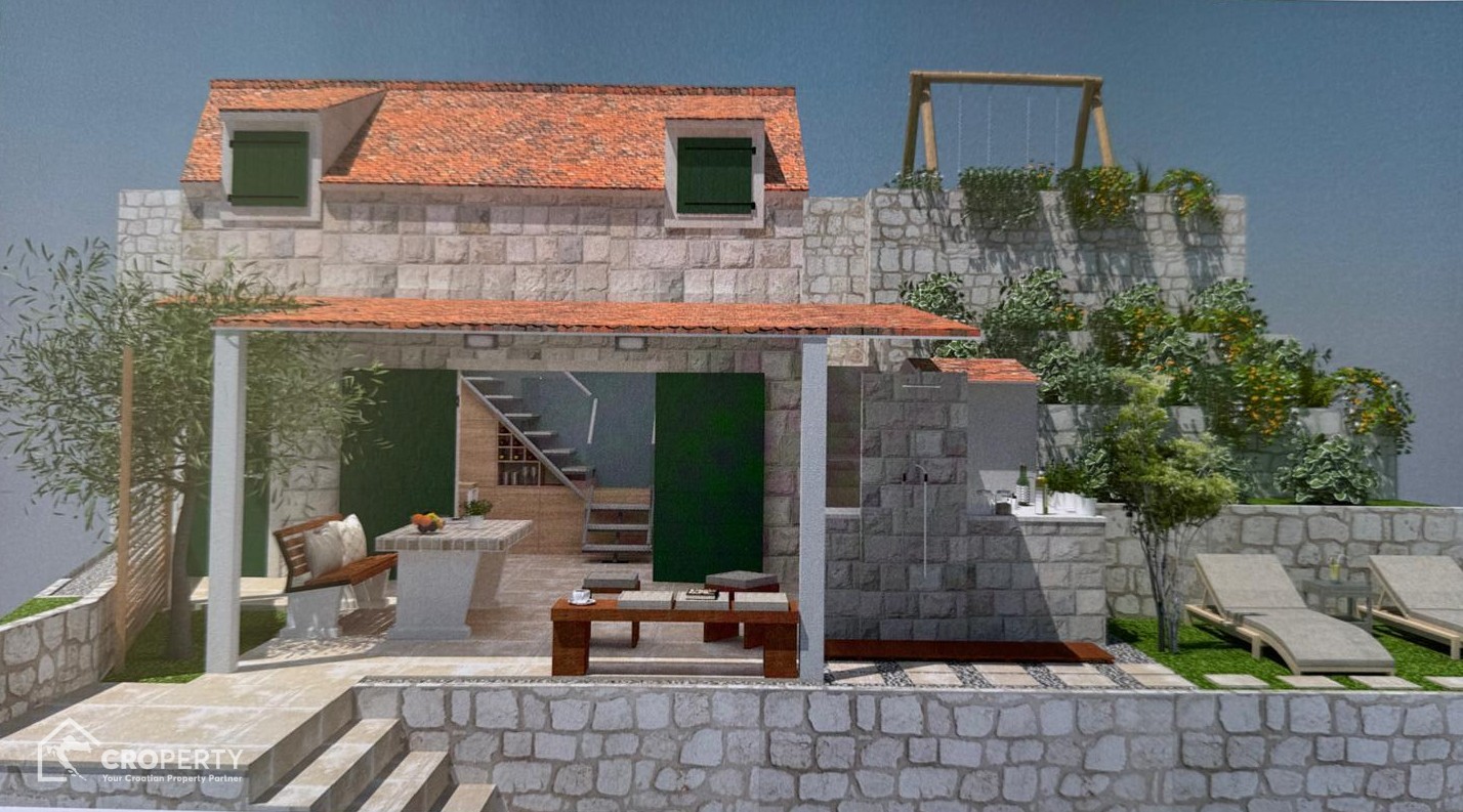 Idealno smješteno u Donjem Selu, na otoku Šolti, samo 800 metara od prekrasne plaže Donja Krušćica. Trajektna luka u Rogaču udaljena je samo 4 km i povezana je autobusnom linijom. Savršeno za odmor, stalni boravak ili pametno ulaganje u luksuz i prirodu.