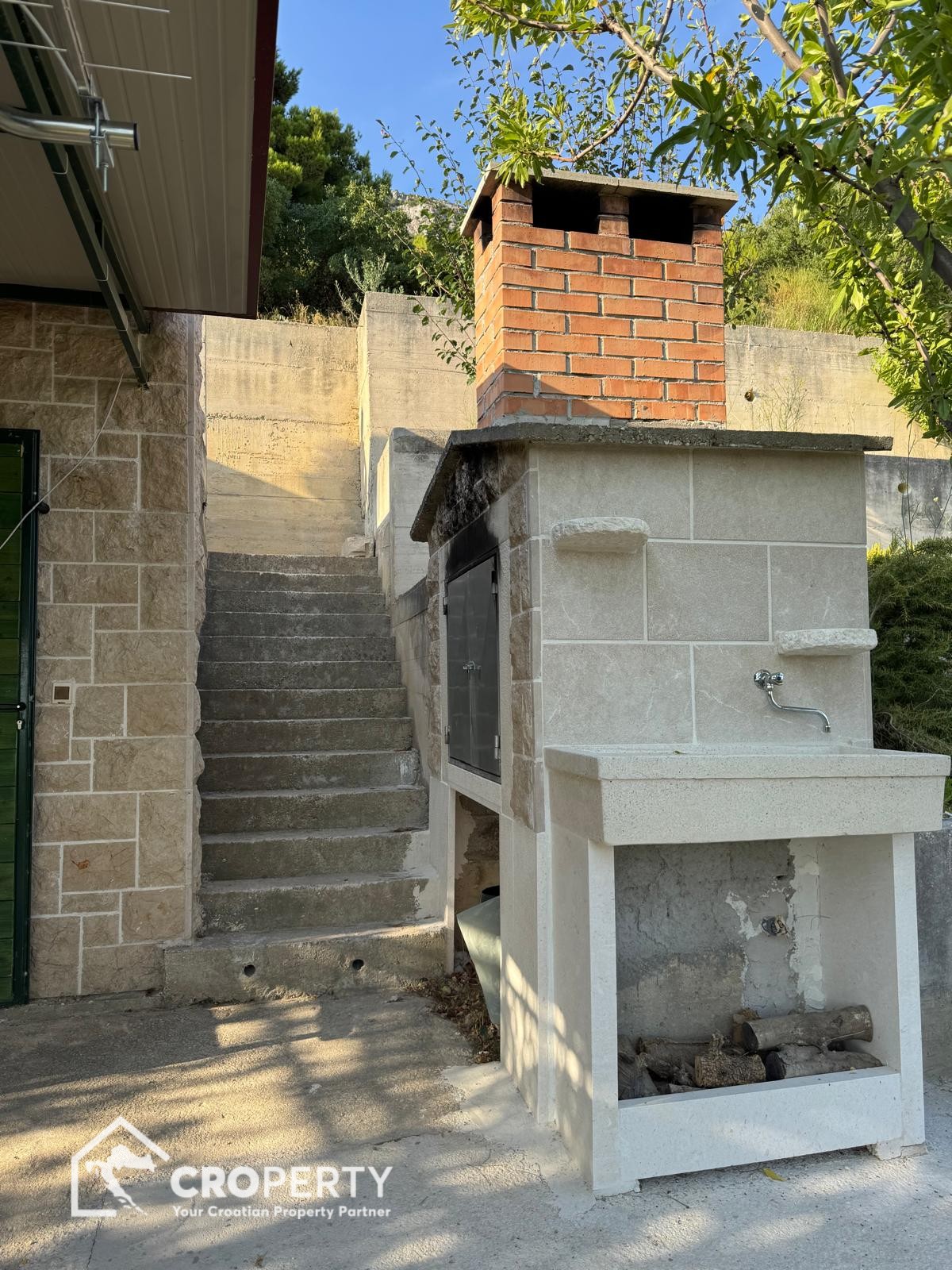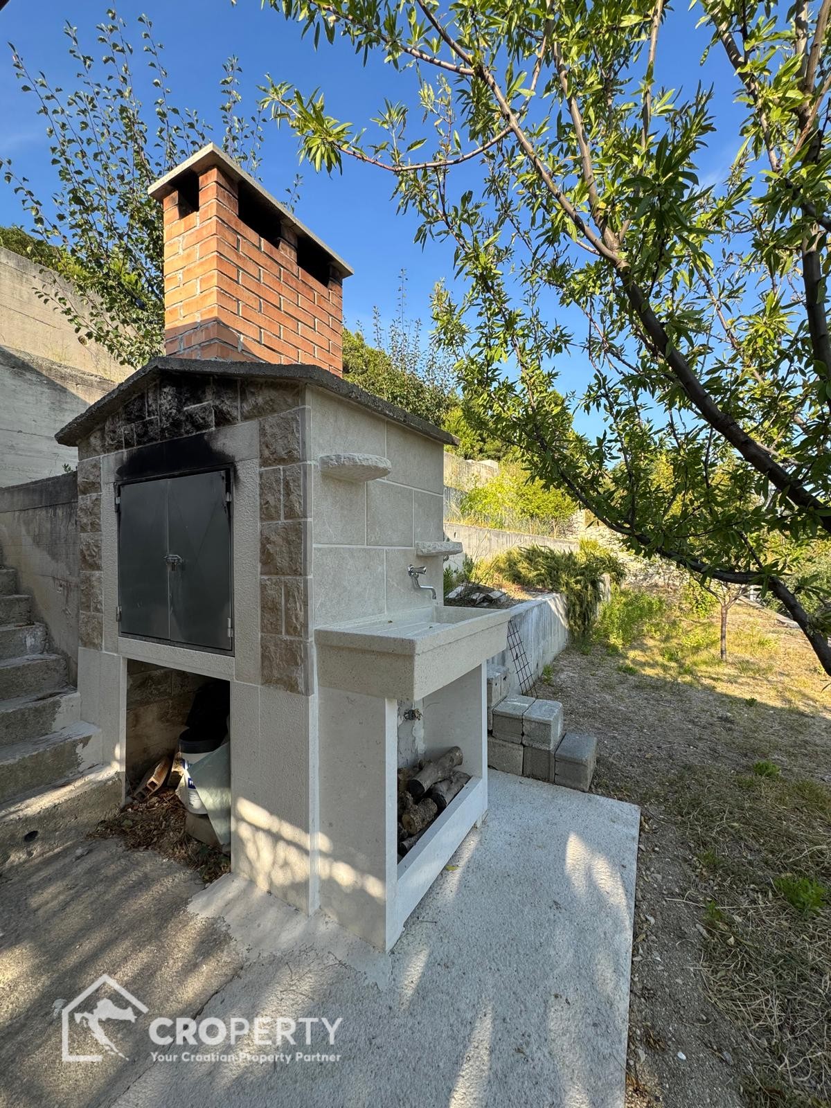 Posredujemo u prodaji vikend kućice na obronku Kozjaka ispod Malačke sa prekrasnim pogledom na more i kaštelanski zaljev. Kućica je trenutne površine 20m2, legalizirana je i koristi se kao studio apartman za odmor i uživanje uz roštilj i prekrasan pogled. Uz objekt je septička jama, a malo dalje je gustirna od 27m3 što daje više nego dovoljno vode. Ova nekretnina ima i svoj kućni broj. Vlasnik ustupa projekt za proširenje objekta.