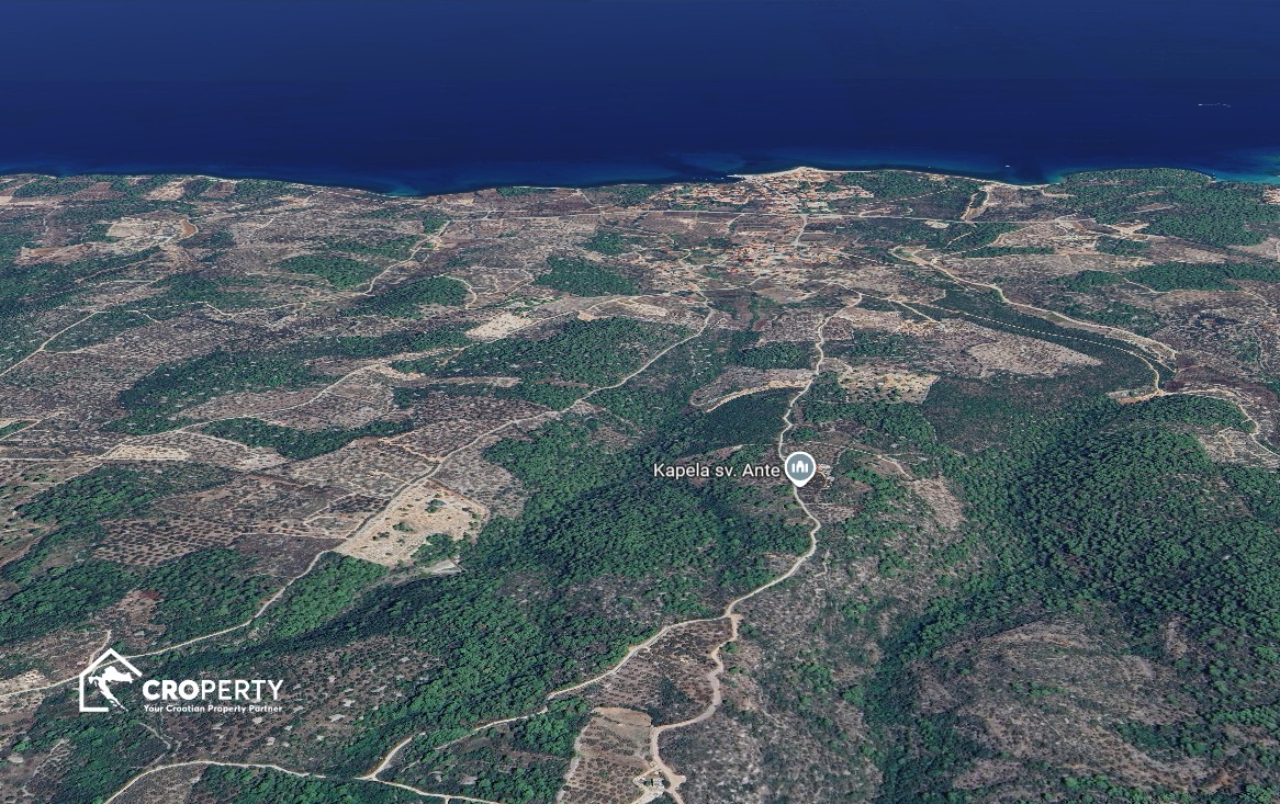 Posredujemo u prodaji poljoprivrednog zemljišta koji se sastoji od dvije parcele. Mogu se kupiti odvojeno, a lokacijski su jedno pored drugog. Veća parcela je 13700m2, a manja 8400m2. Blagog su nagiba s pogledom na brački kanal i more.